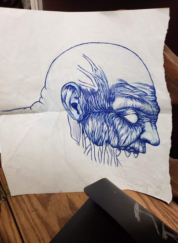 If someone wanted a tattoo of a bird, he’d study the anatomy of its wings. If someone wanted a tattoo of the grim reaper, he’d redraw it a thousand times over until the figure’s hood fell at just the right angle over its skull-like face. Cody’s mentor had him sit in on consultations, listen to what the customer wanted, draw several options, and see if any of them were better than what the actual artist proposed.
